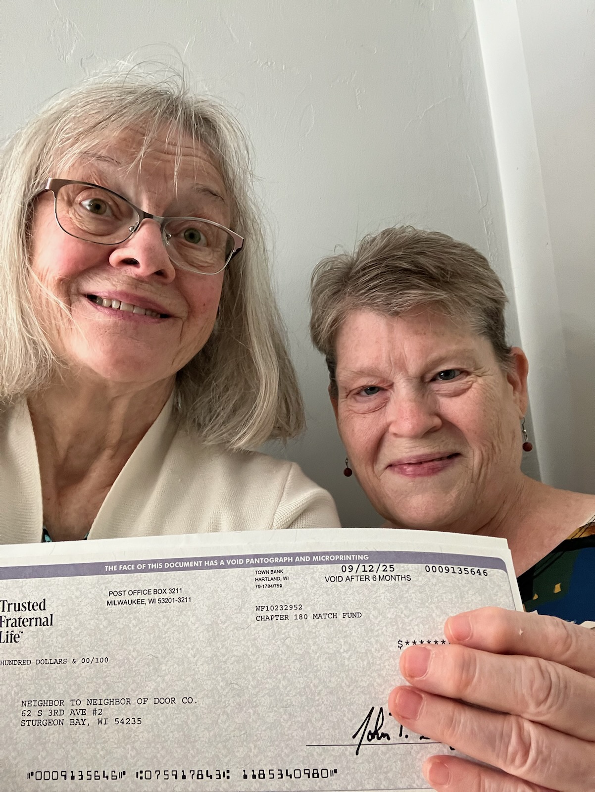 Thanks, also, to Door County Medical Center and an Anonymous Neighbor to Neighbor Board Member for their matching funds sponsorships for the 2025 Stay-At-Home Ball mailing. Your support is much appreciated!! Your support and the community support of the Stay-At-Home Ball mailing is vital to the work that we are able to accomplish throughout the year. Thank you to all!